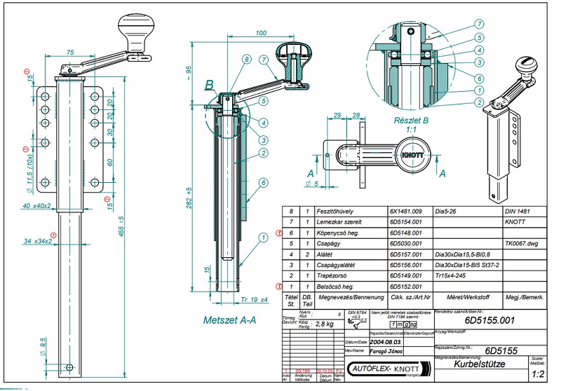 – Opdraaisteun PREMIUM ( KNOTT ) met spindel verstelbare hoogte door draaimechanisme