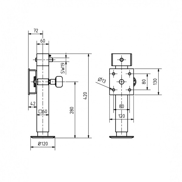 Afmetingen montageplaat: 120 mm x 130 mm