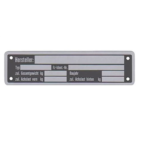 Typeplaatje veelal gebruikt op aanhangwagens, boottrailers, paardentrailers, caravans en landbouwvoertuigen